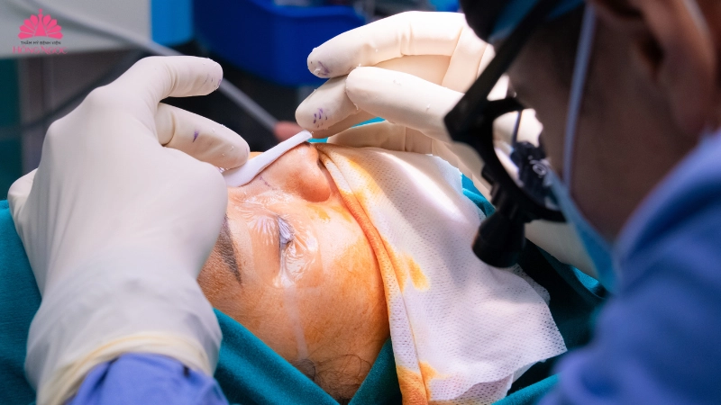 Thực hiện phẫu thuật tại phòng mổ vô khuẩn 1 chiều hiện đại, gây tê hoặc gây mê tùy trường hợp. Thời gian thực hiện một ca nâng mũi Hàn Quốc trung bình từ 45-90 phút tùy vào tình trạng cụ