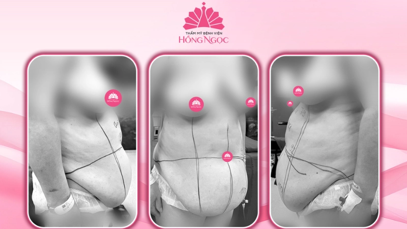 Tiếp nhận trường hợp của chị B.T.Q, ThS.BS Võ Tùng - Bác sĩ Tạo hình thẩm mỹ tại Thẩm mỹ Bệnh viện Hồng Ngọc cho biết, chị Q đến thăm khám trong tình trạng da và mỡ thừa vùng bụng mức độ nặng, kèm viêm, với các chỉ số vòng bụng 79cm, vòng eo 72cm và vòng mông 100cm, bao gồm cả phần da mỡ xệ xuống. Theo đánh giá, do mỡ tích tụ lâu năm, da chùng nhão và cơ thành bụng yếu, việc tiêm tan mỡ trước đó không mang lại hiệu quả, thậm chí có thể làm tăng nguy cơ viêm xơ mô mỡ nếu thực hiện không đúng chỉ định và thiếu an toàn.