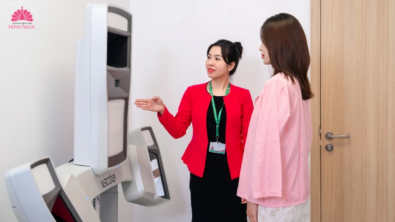 Với mong muốn nâng cấp vòng một đẹp tự nhiên, an toàn, chị Thùy Dương đã tìm đến Thẩm mỹ Bệnh viện Hồng Ngọc để thăm khám và tư vấn. Tại đây, chị được trực tiếp bác sĩ chuyên khoa tạo hình thẩm mỹ thăm khám 1:1 và phân tích kỹ lưỡng cấu trúc vòng một, tình trạng mô tuyến, da ngực cũng như sự mất cân đối của khung xương ngực.