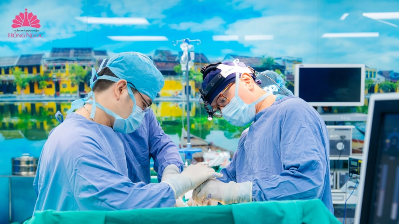 Ca phẫu thuật được tiến hành trong phòng mổ vô khuẩn một chiều, ứng dụng kỹ thuật Dual Plane hiện đại với quy trình gây mê hồi sức an toàn. Đây là phương pháp kết hợp đặt túi ngực một phần dưới cơ ngực lớn và một phần dưới mô tuyến vú. Cụ thể, bác sĩ sẽ giải phóng một phần bờ dưới của cơ ngực lớn và tách nó ra khỏi vị trí bám vào xương sườn, phần trên của túi độn sẽ được đặt dưới lớp cơ này. Phần dưới của túi ngực sẽ được bác sĩ đặt dưới lớp mô tuyến vú, tạo nên sự cân bằng giữa hai mặt phẳng ngực.