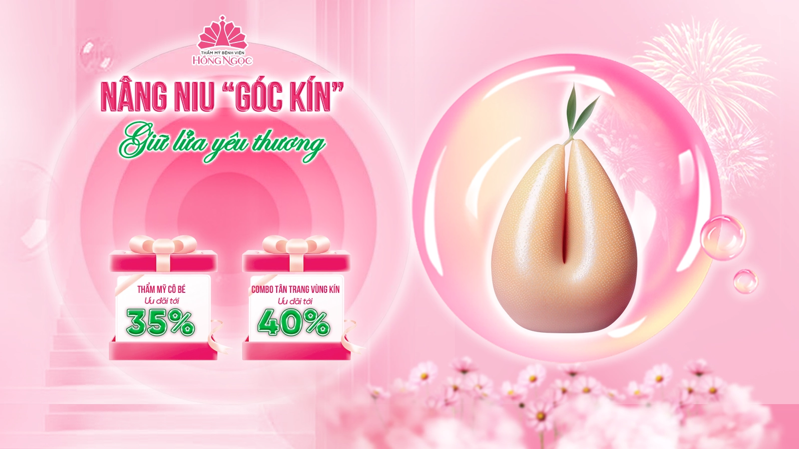 Giải pháp Thẩm mỹ cô bé tại Thẩm mỹ Bệnh viện Hồng Ngọc có thể bao gồm: thu hẹp âm đạo, thu nhỏ môi bé, tạo hình mũ âm vật, trẻ hóa môi lớn, siết cơ nâng điểm G hoặc chỉnh sửa sẹo tầng sinh môn… Thời gian thực hiện nhanh gọn (có thể chỉ từ 45 phút tùy chỉ định), nhẹ nhàng, hạn chế xâm lấn; sau 7–10 ngày, nhiều khách hàng có thể sinh hoạt bình thường, tự tin và thoải mái hơn.