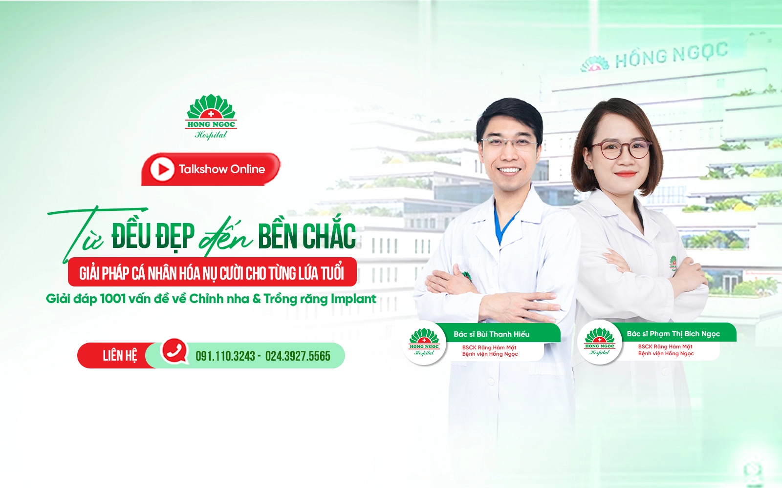 KHOA RĂNG HÀM MẶT BỆNH VIỆN HỒNG NGỌC – NHA SĨ RIÊNG CỦA BẠN! 📞 Hotline đặt lịch: 091.110.3243 - Tổng đài: 024.3927.5565 🌐 Website: https://thammyhongngoc.vn/nha-khoa HỆ THỐNG PHÒNG KHÁM RĂNG HÀM MẶT HỒNG NGỌC: CS1: Tầng 2, Bệnh viện Hồng Ngọc - Số 55 Phố Yên Ninh, phường Ba Đình, Hà Nội CS2: Tầng B1, tầng 1 & tầng 4 Bệnh Viện Hồng Ngọc Phúc Trường Minh - số 8 đường Châu Văn Liêm, phường Từ Liêm, Hà Nội CS3: Tầng 1, Gold Season - số 47 Nguyễn Tuân, phường Thanh Xuân, Hà Nội CS4: Tầng 10, Keangnam Landmark Tower - phường Yên Hòa, Hà Nội CS5: Tầng 3, Tasco Mall - 7 - 9 đường Nguyễn Văn Linh, phường Việt Hưng, Hà Nội CS6: Tầng 1, HPC Landmark 105 - Khu ĐTM Văn Khê, phường Hà Đông, Hà Nội CS7: Tầng 1, 2 & 3 Tòa nhà Kosmo - 161 Xuân La, phường Xuân Đỉnh, Hà Nội Hotline đặt lịch: 091.110.3243 - Tổng đài: 024.3927.5565 |